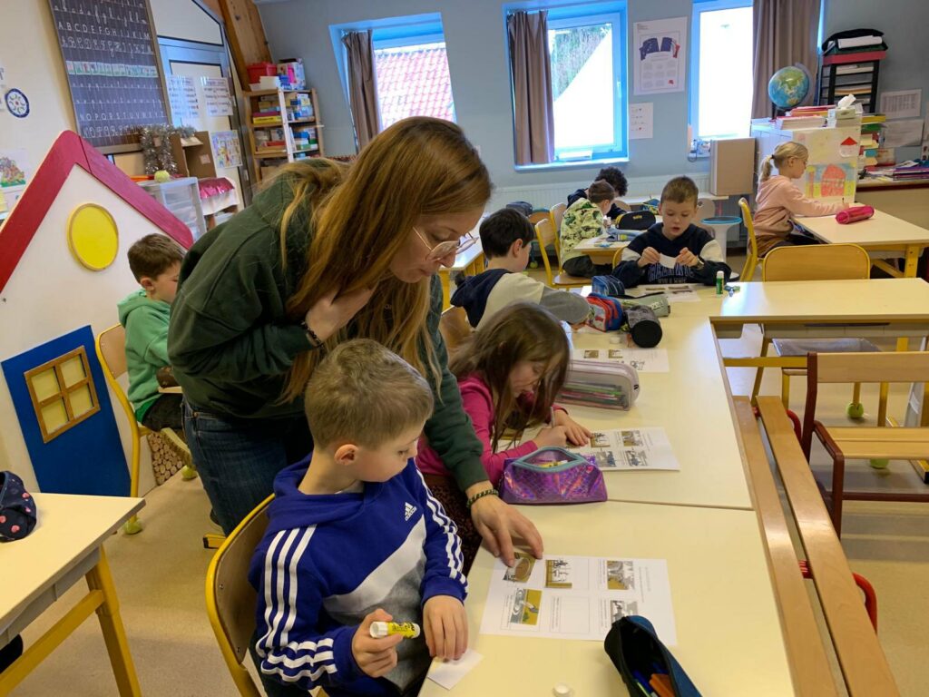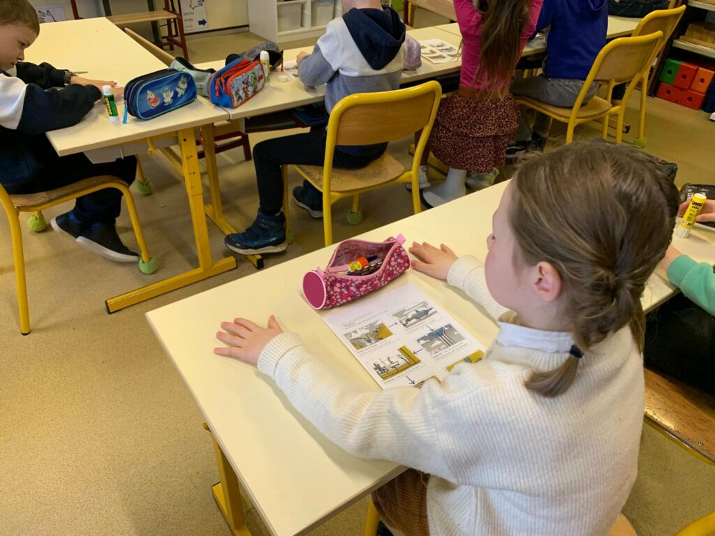 Accompagnés par Emma de chez Ecopousse, les élèves ont exploré chaque maillon de la chaîne qui permet à l’eau d’arriver jusqu’à nos robinets, puis d’être nettoyée avant de retourner dans l’environnement. Ils ont découvert comment l’eau est prélevée dans les rivières ou les nappes phréatiques, transformée en eau potable grâce à des procédés de filtration et de désinfection, stockée dans des réservoirs, utilisée dans nos foyers, puis traitée dans des stations d’épuration avant d’être rejetée dans la nature.